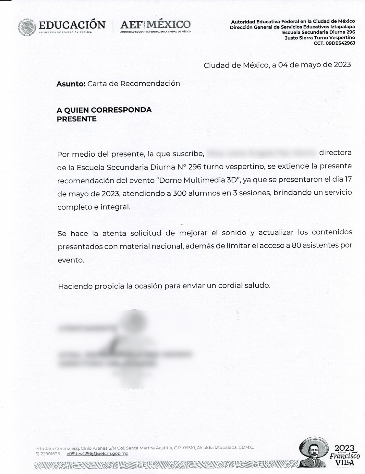 Proyectamos documentales estos apegados a las asignaturas educativas o bien película si así lo requiere la escuela la actividad se realiza por grados dependiendo de la cantidad de alumnos que cuente la escuela; Iniciamos con simuladores, posterior la proyección y finalizamos con una Domo Fiesta (CONSTA DE JUEGO DE LUCES CON MÚSICA ADENTRO DEL DOMO PARA MAYOR DIVERSIÓN PARA LOS ALUMNOS).
